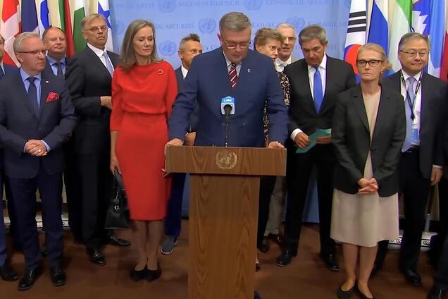 Як повідомив власкор Укрінформу з Нью-Йорка, заяву журналістам оголосив заступник міністра закордонних справ Польщі Марцін Босацький. Він зробив це у присутності представників країн, які підтримали ініціативу. За його словами, Росія здійснила 19 вторгнень дронами на територію Польщі, і вперше з початку війни ці апарати були превентивно знешкоджені.
